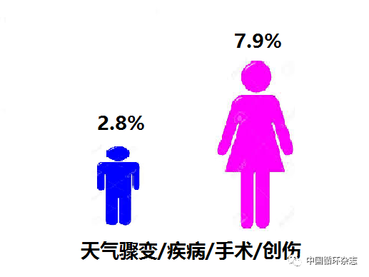 阜外医院杨跃进教授牵头的中国心梗注册研究近期报告了国人心梗的诱发因素。结果发现男女在心梗的诱因发面存在很大的不同。