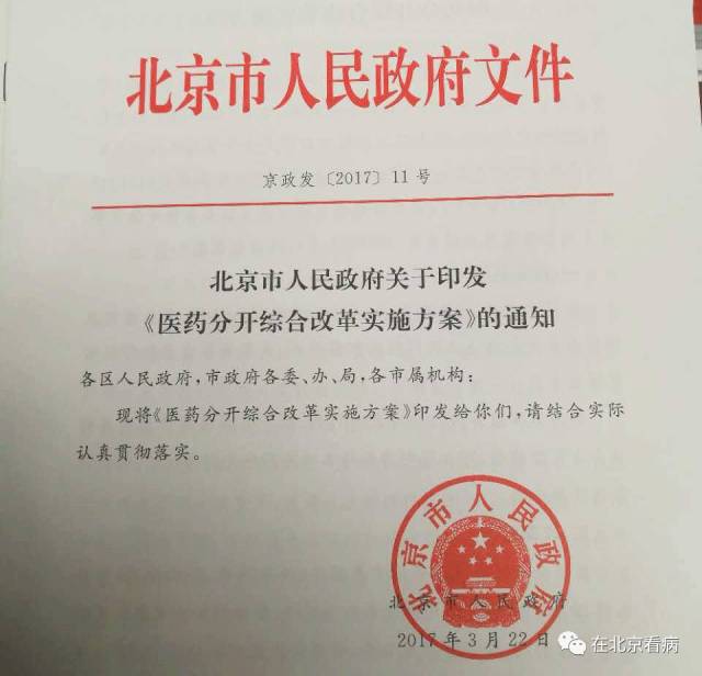 3月22日,北京市发布公立医疗机构医药分开综合改革实施方案。从4月8号起,所有在京公立医疗机构将实施新的政策。