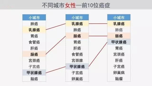大城市女性:乳腺癌和甲状腺癌风险最高;