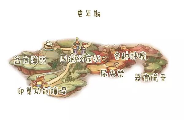 女性的一生可分为新生儿期、婴幼儿期、青春期、生育期、更年期和老年期。不同的阶段,有不同的生理特点、疾病过程以及健康问题,于是,我们就可以勾勒出一幅“女性妇科疾病地图”。新生儿很少罹患妇科疾病,婴幼儿期与青春期有相似之处,更年期与老年期有雷同之点,所以就以青春期、生育期和更年期作为主要的经线,再以主要疾病为纬线,展示每个“区域”的特点。