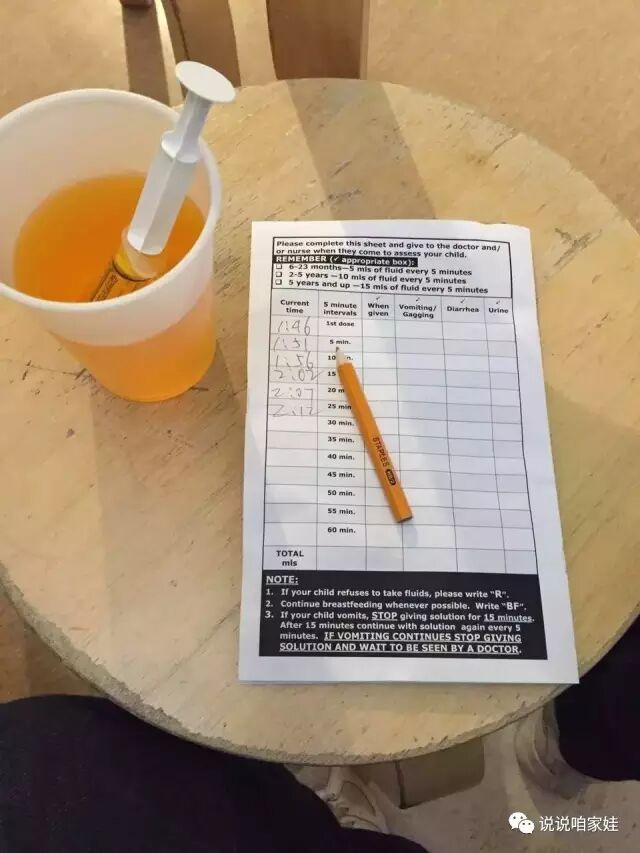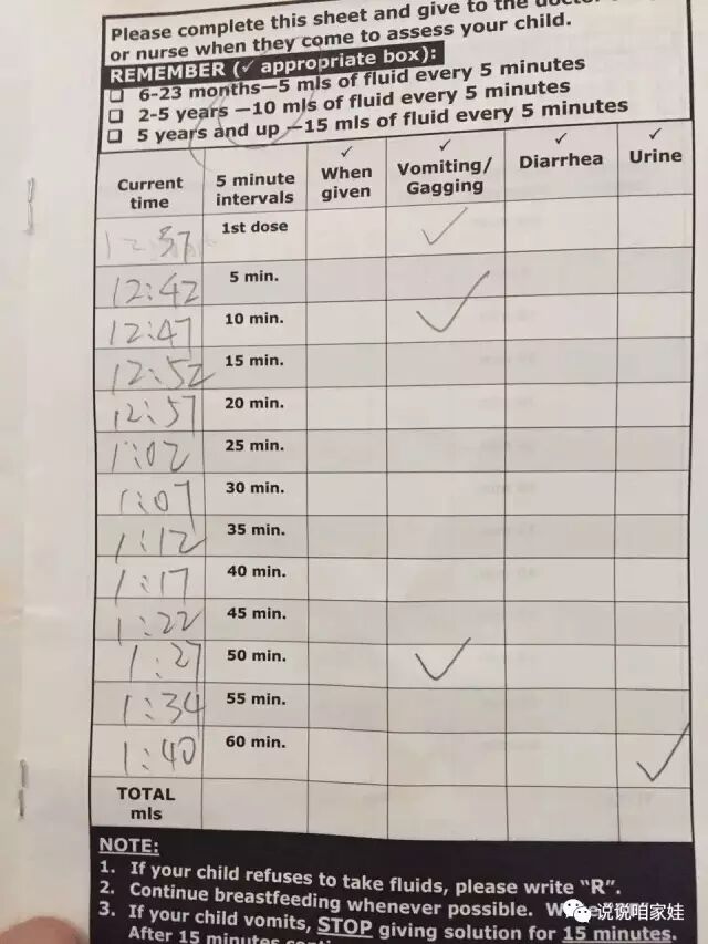 让我每5分钟就给毛头喝10毫升的电解质水,如果吐了就记录下来,回头接诊医生要看。