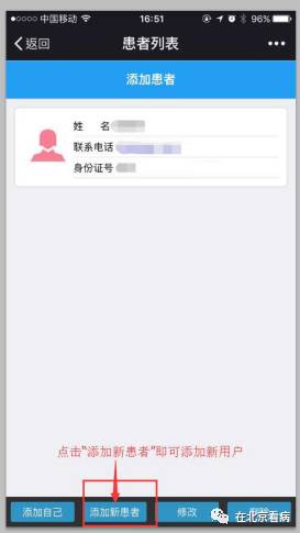 然后选择“添加新患者”