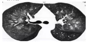 这是肺内通气灌注不一致的表现,主要是小支气管炎症导致肺内局部积气,像马赛克拼图一样