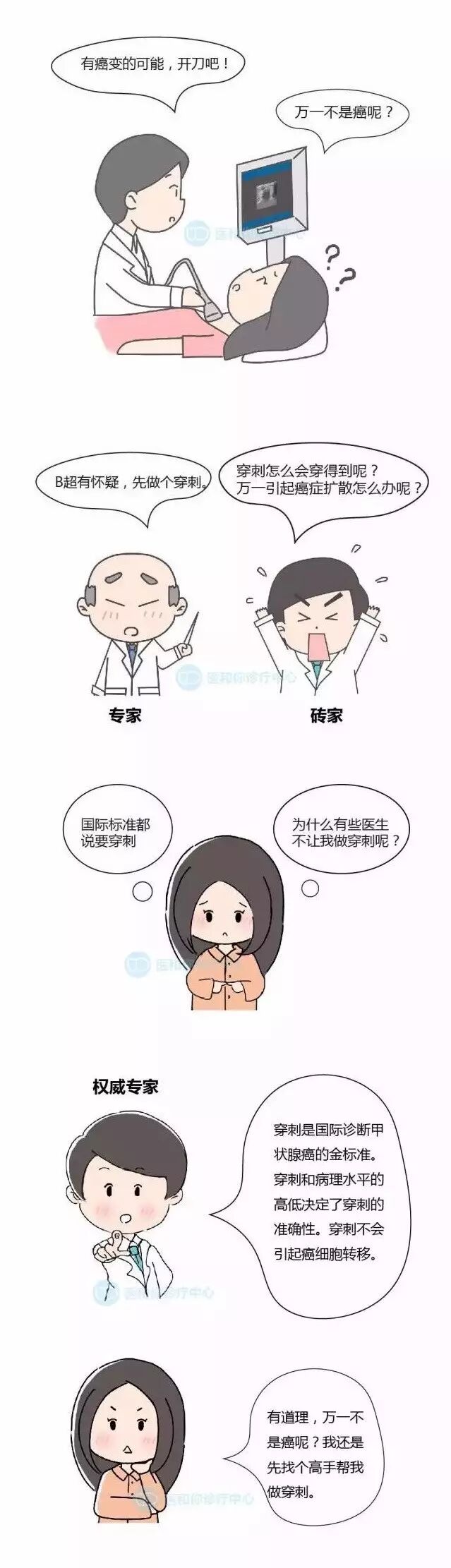 所以医生建议你穿,就穿吧,明确诊断才能合理的选择治疗方案哦!穿刺没那么恐怖,细针穿刺不会引起甲状腺癌扩散哦!说不定还会有惊喜呢,万一是良性的呢~~~