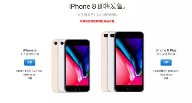 2、iPhone 8、8 Plus的64GB版和256GB版分别售价5888元,7188元,6688元,7988元,9月15日预售,9月22日发售。