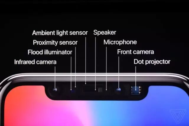 同时,新的iPhone X如传闻一样,支持Face ID登录解锁功能来取代指纹Touch ID,在小小的一块“额头”区域集成了多达8个组件,能够瞬间通过3万个点来感知用户面部特征。