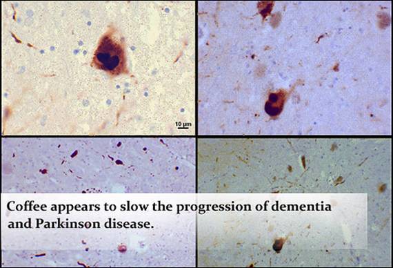 对小鼠的研究表明,咖啡因可以抑制淀粉样蛋白β生成,也会促进粒细胞集落刺激因子、白细胞介素-10和白细胞介素-6水平升高。咖啡因被认为对帕金森病患者有神经保护作用。