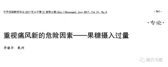 下面是中山二院风湿免疫科戴冽主任,发表在《中华风湿病学杂志》2017年6月的专论,从专业的角度解释了果糖摄入过多导致高尿酸血症和痛风的机制,有助于大家对这一机制的理解。