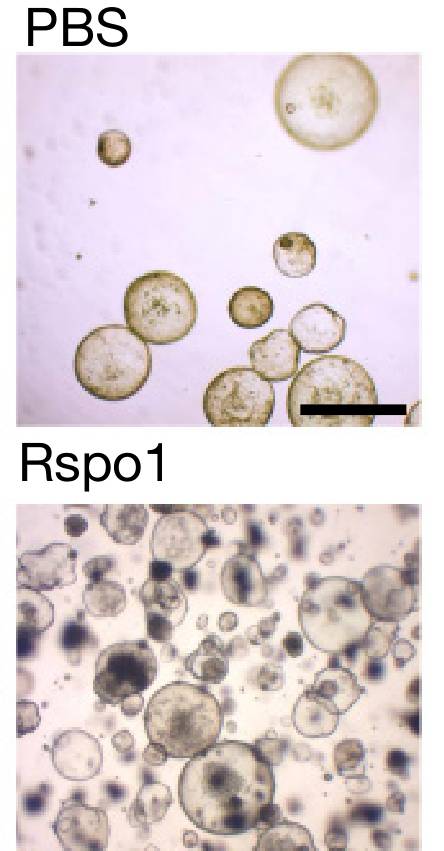 Rspo会显著增强敏感干细胞的扩增速度(单细胞培养24小时)