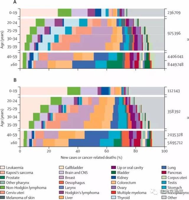 20岁—39岁之间的全球癌症负担不同于中老年人和儿童青少年,并且在不同年龄、性别、发展水平和地理区域间都有显著差异;