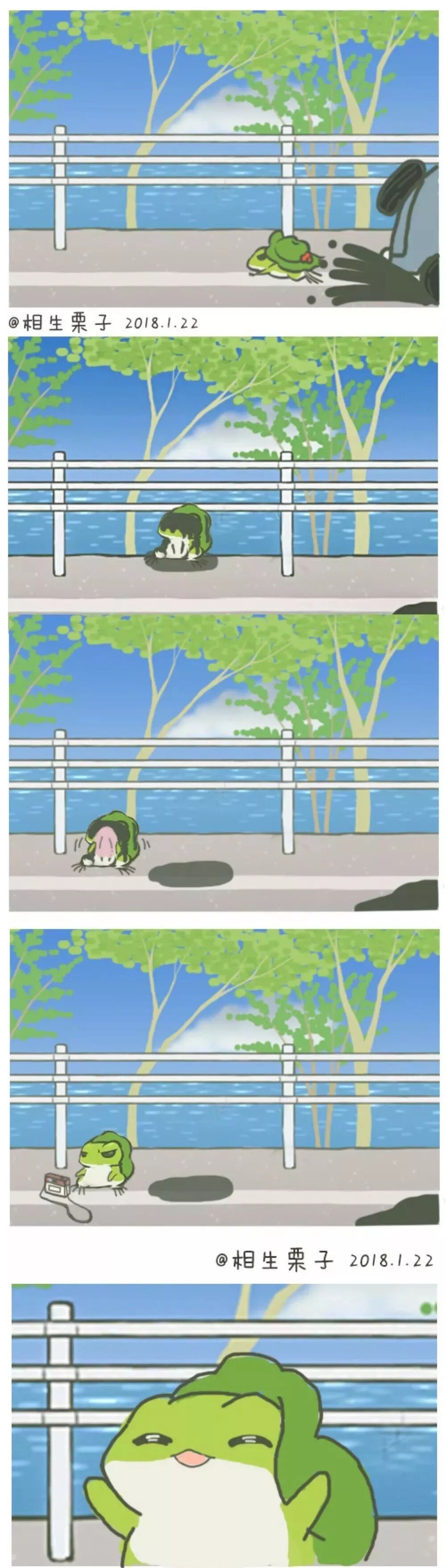 可就算这样,我们还是像这只青蛙寄回明信片一样,发一条“岁月安好”的朋友圈,仅对爸妈可见,让他们放心。