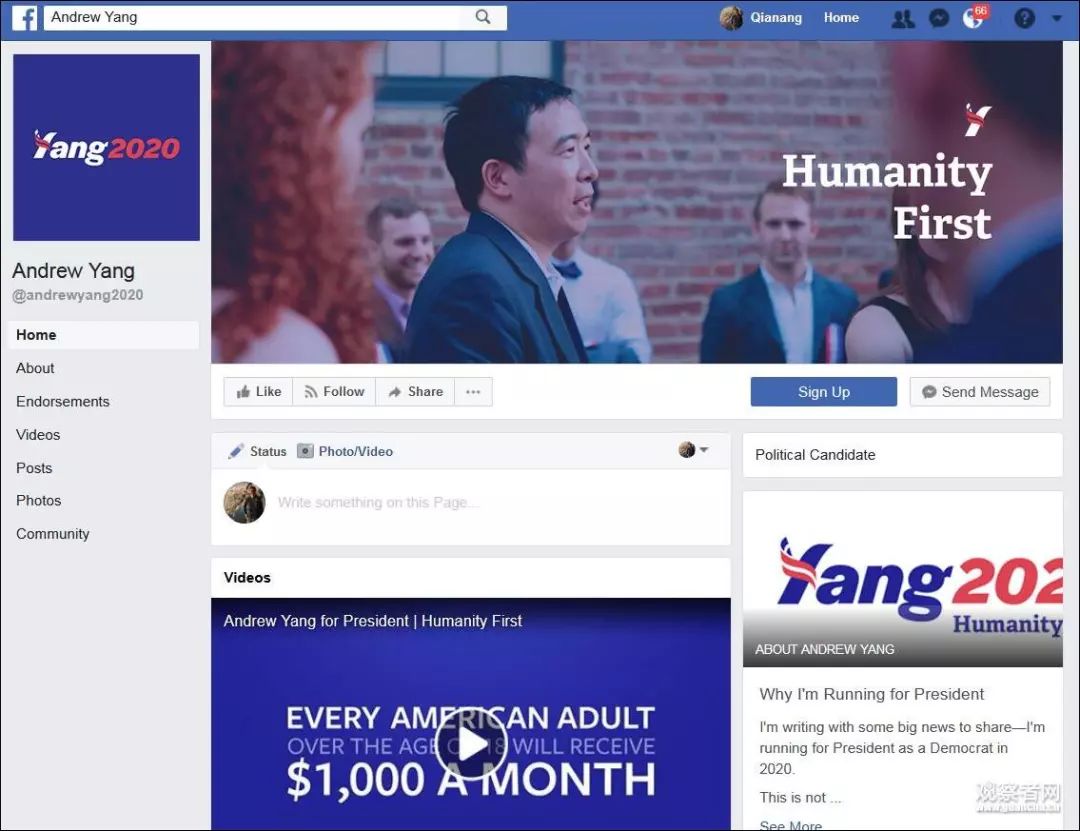 自己专属的facebook竞选界面也一锤定音。这名中国人,正式渗透到美国总统大选之中!