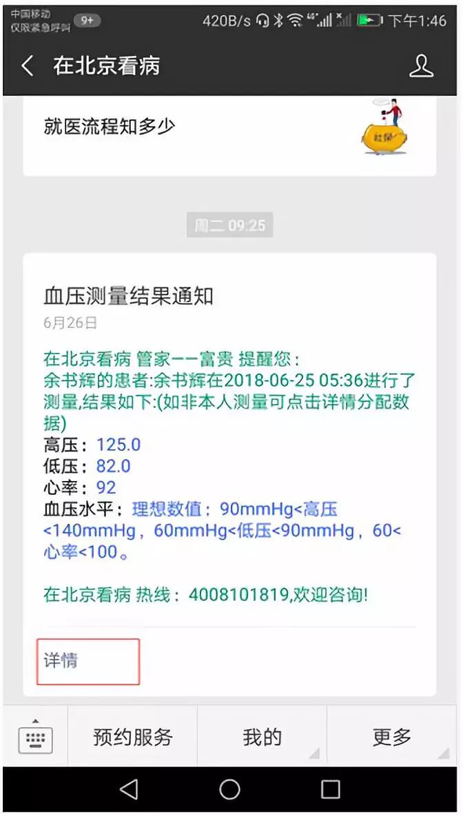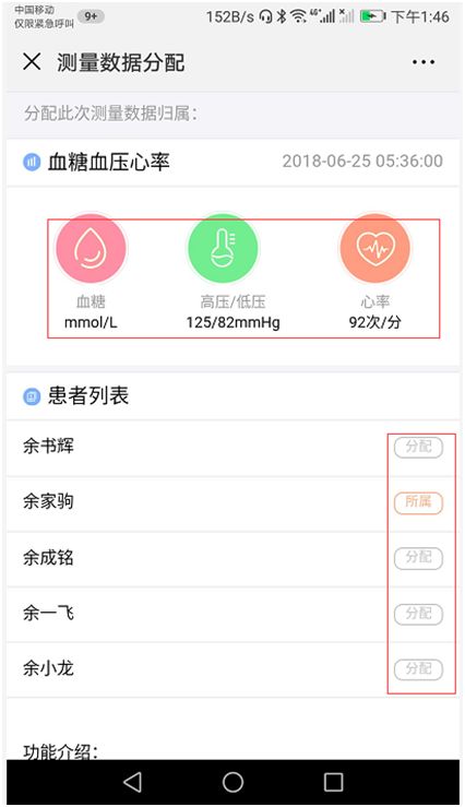 或者在收到平台测量的数据后,点击“详情”,将测量的数据指定给测量的人,通过此功能,该设备可以为一家人分别测量记录。