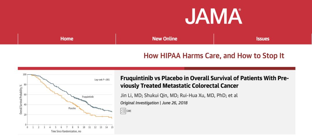 这是中国抗肿瘤新药临床研究成果第一次全文发表在JAMA上。