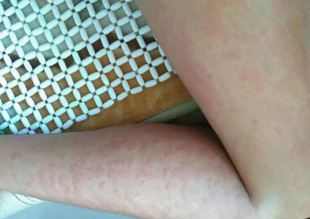 症状:剧烈瘙痒,皮疹时起时消,消退后不留痕迹一过性风团。
